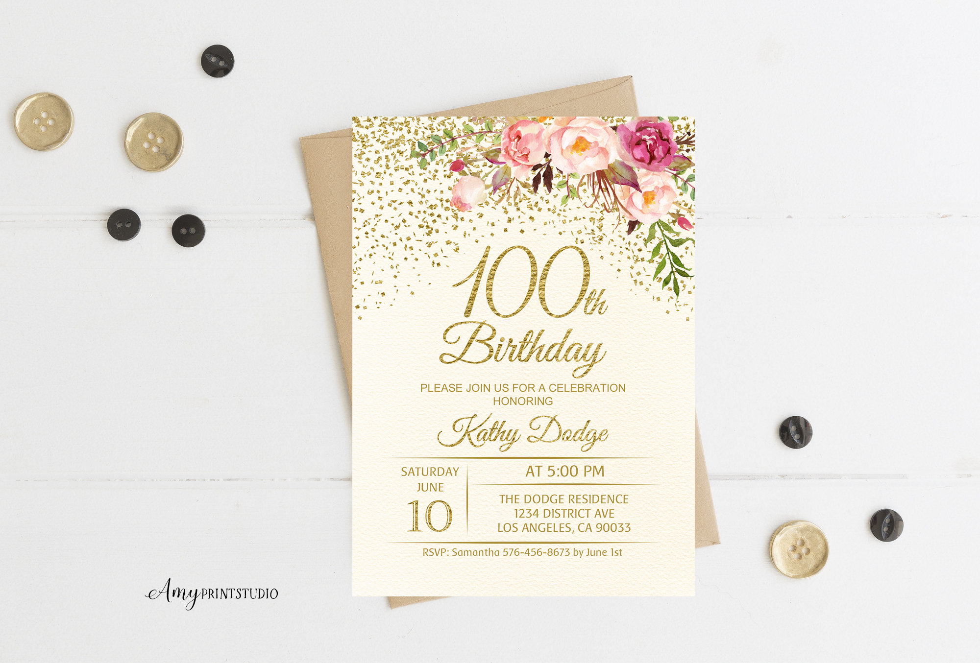 100th Birthday Invitations Printable 100th Birthday Party Etsy Australia